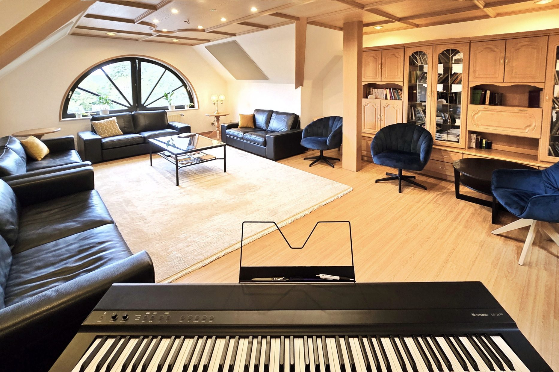In unserer Bibliothek findest du Ruhe und Entspannung. Sie lädt zu tiefen Gesprächen ein und bereichert dich mit christlicher Literatur, während sanftes Musizieren die harmonische Atmosphäre vervollständigt.